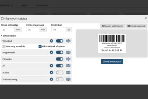 Rendszerünkben a vonalkód kezelés mellett címkenyomtató használatára is van lehetőség, így gyorsan és egyszerűen készíthetők árcímkék a termékekhez.